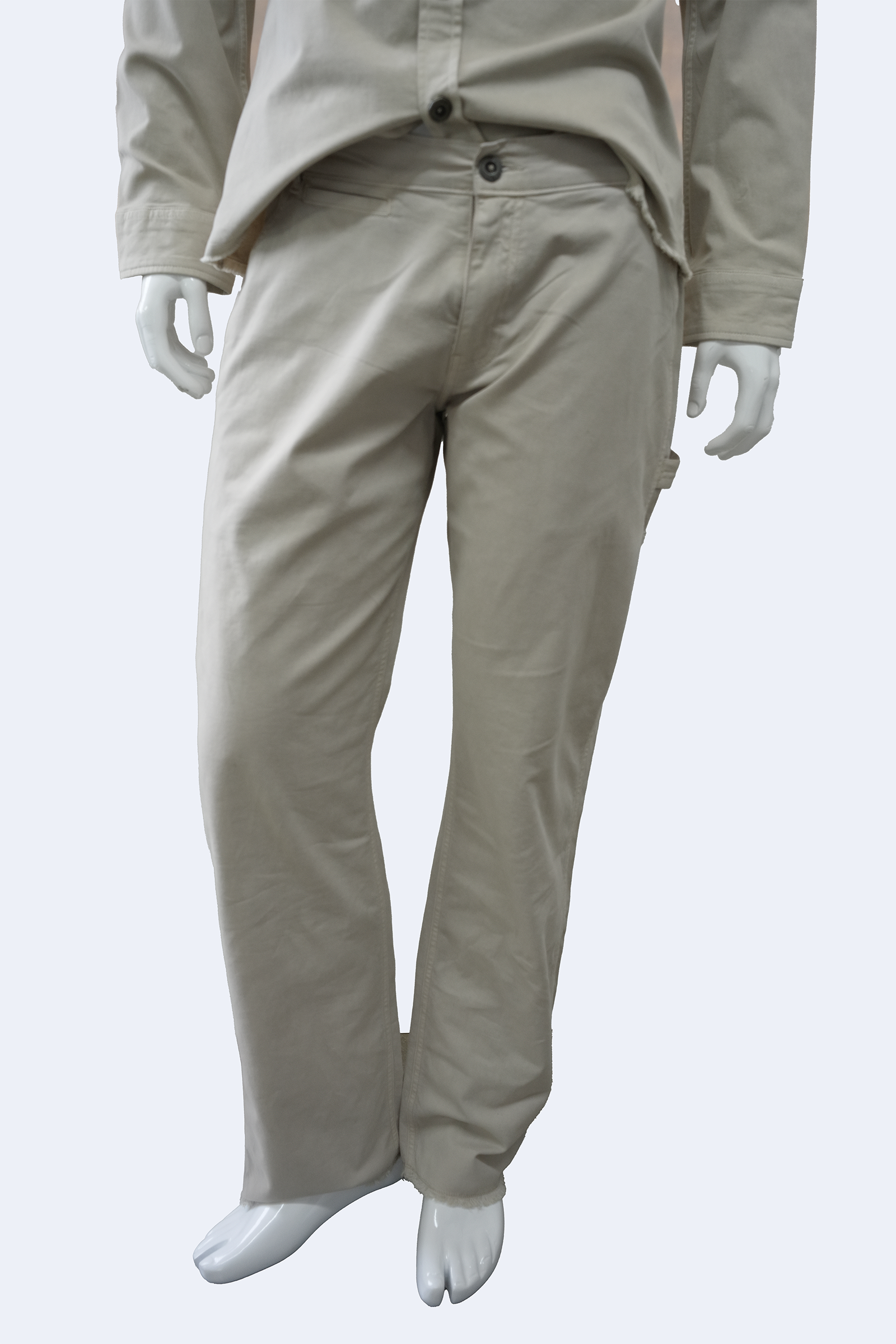 The Chandler Carpenter Pant is cut from 98% cotton twill 2% spandex fabric and features a relaxed leg fit. This carpenter pant has a two slanted chino pockets, two back patch pockets, and a side carpenter pocket with carpenter hook. It features a raw edge frayed finish on the bottom hem.