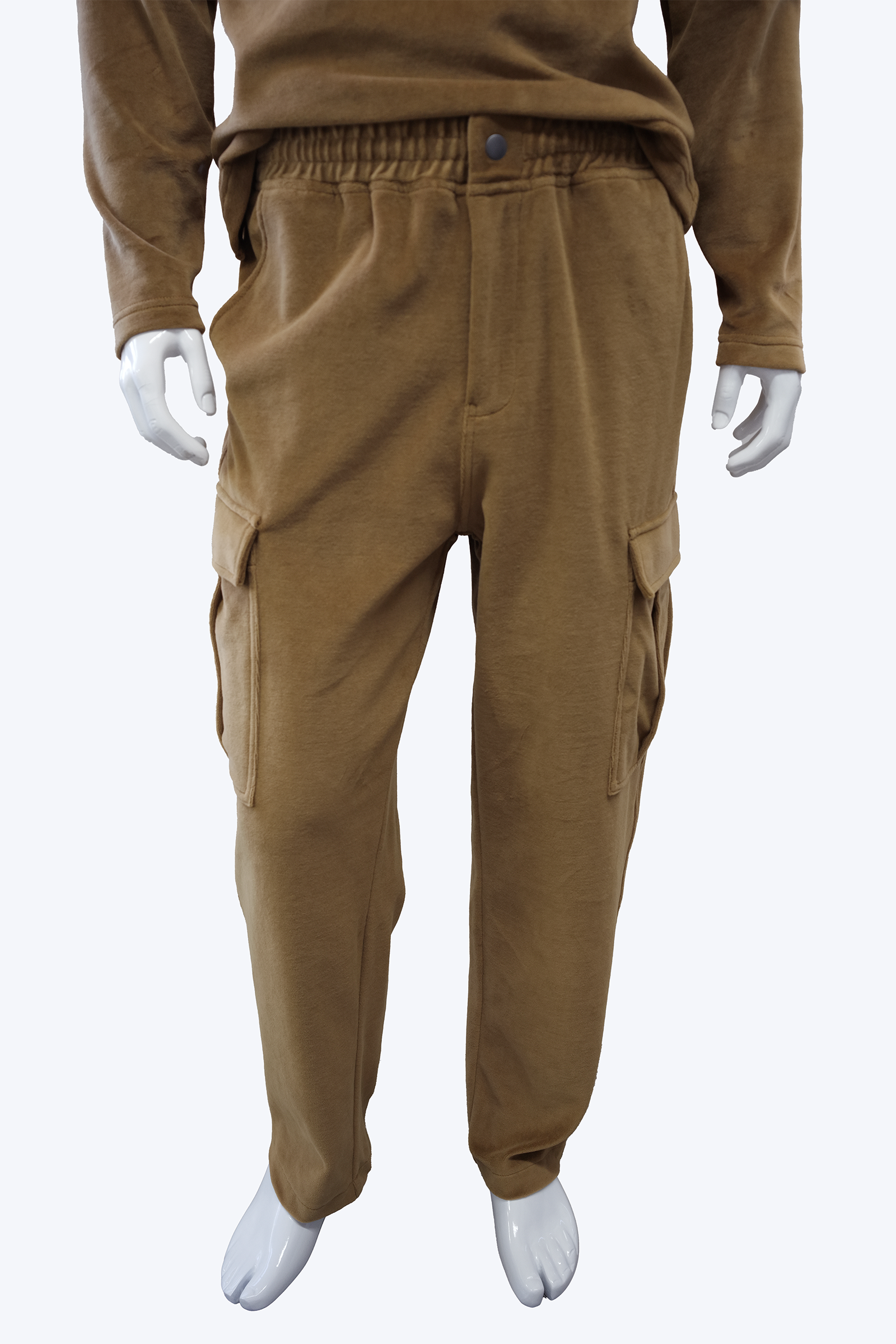 - Plush Velour Fabric - Relaxed fit - Two Side Cargo Pockets, Two Slanted Chino Pockets, One Back Patch Pocket - Pull On Waistband with button closure - Machine wash in cold water and dry on low heat.